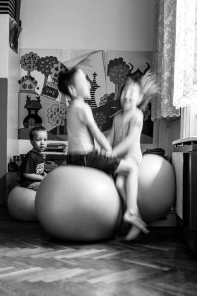 Sokszor előfordul, hogy a gyerekek nem tudnak egy pillanatra sem egy helyben maradni. Ilyenkor próbáld ki, hogy hosszabb záridőt használsz. Állíts be akár 1/40s, 1/20s-os záridőt, nézd meg mi történik ilyenkor! Arra mindenképpen érdemes figyelni, hogy hosszabb záridőnél stabilan tartsd a gépet, tartsd bent a levegőt, a könyöködet pedig támaszd meg, hogy még véletlenül se remegjen meg a kezed, vagy ha megteheted, helyezd el bárhol (a földön, egy széken vagy állványon), úgy tuti nem mozdul be. Így el tudod érni, hogy a háttér éles maradjon, miközben a gyerekek mozgása elmosódik a képen.